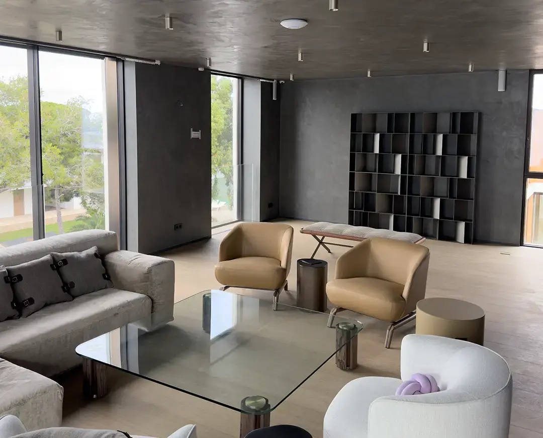 Microcement in office areas provides a professional and stylish finish that enhances productivity and creativity. Its minimalist design and durability make it an ideal choice for creating a clean, cohesive workspace. Easy to maintain and highly versatile, microcement is perfect for modern office interiors seeking a timeless look.